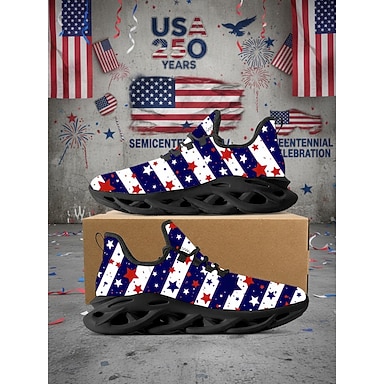 Tênis masculino de malha com a bandeira dos EUA – tênis de corrida leves e respiráveis com cadarço, estrelas patrióticas &Listras em estilo para o Dia da Independência, desfiles e caminhadas ao ar