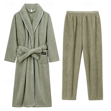 Homens Pijamas Roupa de Dormir Roupão Tecido Moda à moda Clássico Casa Diário De Cama Flanela Poliéster Térmico / Quente Conforto Macio Decote V Manga Longa Outono Inverno Rosa Camelo