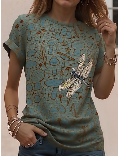 Mulheres Camiseta Imprimir Gráfico Animal Vintage à moda Clássico Manga Curta Gola Redonda Decote Redondo Tops regulares Diário Final de semana Verde e Azul Verde Claro Verde Escuro Verão Primavera