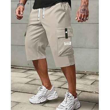 Homens Bermuda Cargo Shorts de verão calções capri Com Cordão Cintura elástica Bolso multi Tecido Conforto Vestível Comprimento da panturrilha Ao ar livre Esporte Diário Moda Casual Preto Cáqui