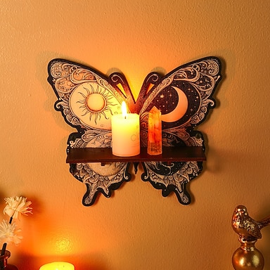 Suporte decorativo para armazenamento em formato de sol, lua, estrela e borboleta, prateleira flutuante de madeira para montar (faça você mesmo), ideal para decoração de parede em sala de jantar, sala de estar, quarto e despensa.