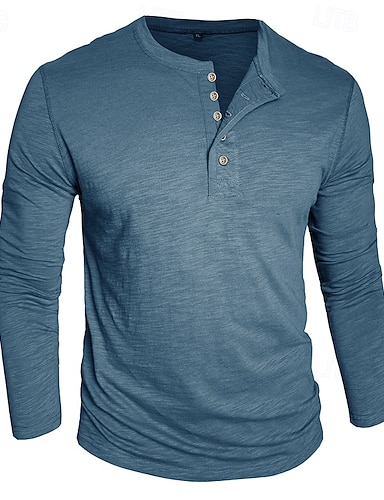 Homens Camisa Henley Camisetas Camiseta 100% algodão Manga Longa Côr Sólida Tecido Cor Única Moda Designer Casual Botões Henley Casual Diário Ao ar livre Verão Primavera Outono Preto Branco Azul Claro