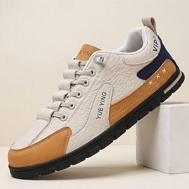 Sapatos casuais masculinos de couro sintético com cadarço, modernos e leves para uso diário.