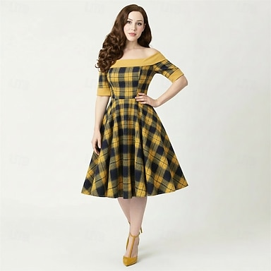 Retro Vintage Anos 50 Hepburn Vestidos Vestido de uma linha Vestido swing Fantasia Mulheres Baile de Máscaras Casual / Diário Festa de Solteira Adulto Vestido Vestidos de baile
