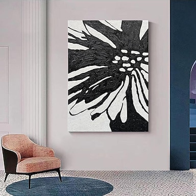 pintura a óleo artesanal lona arte da parede decoração abstrata preto e branco flores simples para decoração de casa rolou pintura sem moldura não esticada