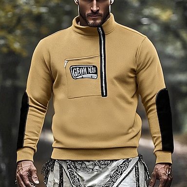 Homens Moletom Fleece Moletom com zíper Preto Verde Tropa Azul Marinha Cáqui Meio Zíper Tecido Bolsos Desportos e Ar livre Diário Feriado Roupa de rua Legal Casual Primavera & Outono Roupa Moletons