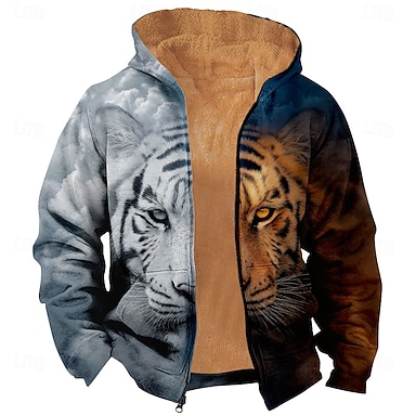 Homens Tigre Tosão Moletom Moda Diário Simples Casual Gola Redonda Ao ar livre Montanhismo Preto Zip Up Outono Inverno Designer S M L XL 2XL 3XL