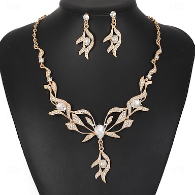 Conjuntos de joias de noiva 1conjunto Zircão Strass Liga 1 Colar Brincos Mulheres Moda Personalizada Luxo Fofo Geométrico Formato de Folha Flor Irregular Conjunto de jóias Para Casamento Festa Traje