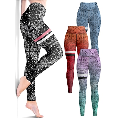 Mulheres Calças de ioga Butt Lift Compressão abdominal Cintura Alta Treino de Ginástica Corrida Ginástica Leggings Cortadas Estampado Cashemere Preto Vermelho Azul empoeirado Outono Esportes Roupas