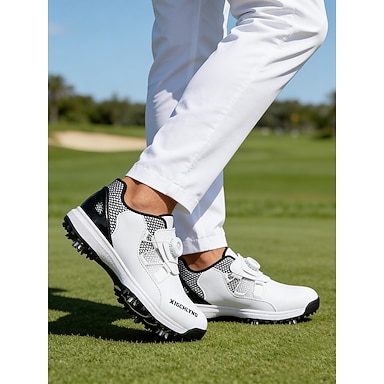 Tênis de golfe masculino branco, design esportivo com cadarço, sola com amortecimento, estilo esportivo moderno para campos de golfe e treinos.