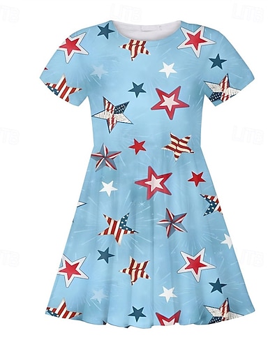 100% Algodão Infantil Para Meninos Azul Preto Branco Gráfico Águia 250º Aniversário Camisa Blusa Gola Redonda Manga Curta Ao ar livre Dia a Dia Moda Roupa de rua Designer Estampado Verão Primavera