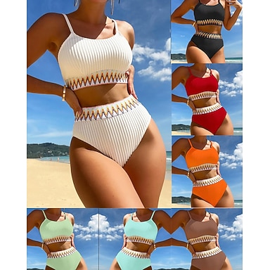 Mulheres Roupa de banho Biquíni de cintura alta com franzidos Maiôs Boho Elástico Sem Manga Roupa de Banho Surfe Praia Férias Verão