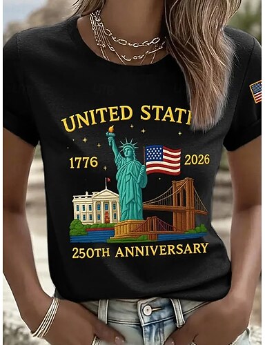 Dia da Independência Aniversário Americano Camiseta Feminina Estampada Gráfica Bandeira Estilosa Clássica Casual Manga Curta Gola Careca Gola Redonda Tops Regulares Diário Azul Preto Vermelho Verde