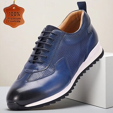 Tênis masculino de couro azul marinho – tênis estilosos e respiráveis com design perfurado, perfeitos para looks casuais e esportivos.