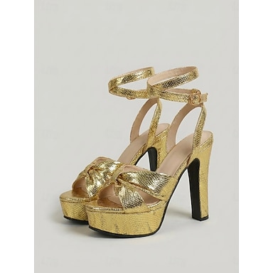 Sandálias femininas douradas de plataforma com salto alto, modelo aberto com tira no tornozelo, perfeitas para festas noturnas e baladas. &eventos noturnos