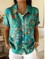 Mulheres Camisa Social Gráfico Geométrica Vintage à moda Moderno Manga Longa Colarinho de Camisa Tops regulares Casual Diário Azul Verão Primavera