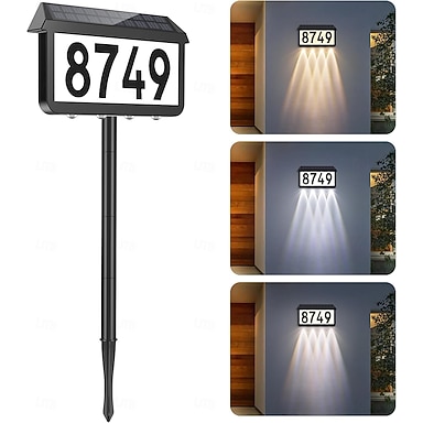 Placas de endereço solares, número da casa para exterior à prova d'água, placas de endereço iluminadas com LED de 3 cores com estaca, números de endereço iluminados por energia solar para montagem na