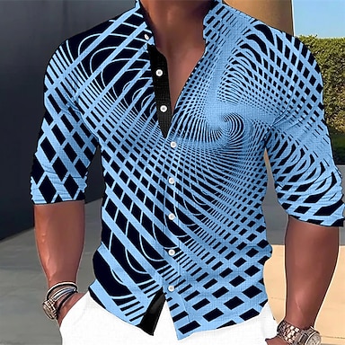 Homens Camisa Social Saia Estampa Geométrica Ao ar livre Casual Azul Verde Azulado Marron Verde Manga Longa Colarinho Chinês Verão Primavera Roupa Imprimir
