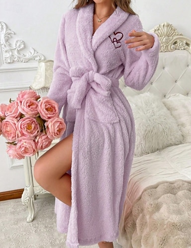 Mulheres Pijamas manto Flanela Moda Casual Cor imaculada Bolsos Férias Casa De Cama Manga Longa Lapela Rosa Roxo Outono Inverno Moderno
