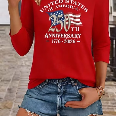 Dia da Independência Americana Mulheres Camiseta Imprimir Floral Gráfico Bandeira à moda Clássico Casual Manga Curta Gola Redonda Decote Redondo Tops regulares Diário Azul Vermelho Verão Primavera
