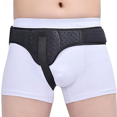 Cinta para hérnia inguinal unilateral em adultos com suporte para gases intestinais, indicada para fixação da pressão em pacientes de meia-idade e idosos.