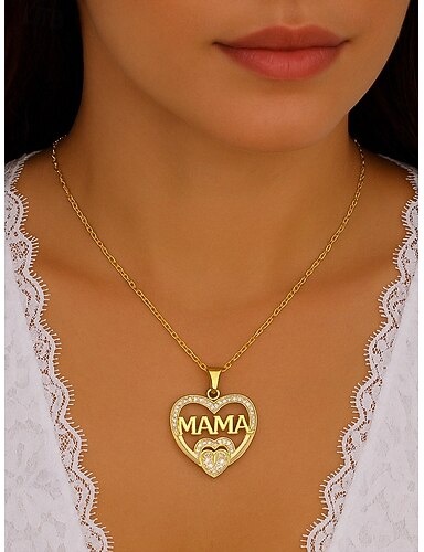 Colar com pingente de coração dourado "mamãe" e detalhes em strass – um elegante presente de dia das mães para mulheres, mães e avós