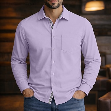 Homens Camisa Social Camisa casual camisa de botão Preto Verde Claro Azul Verde Escuro Roxo Manga Longa Tecido Colarinho de Camisa Casual Diário Bolso frontal Roupa Elegante Moda Clássico Casual