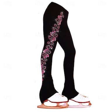 Calças para Patinação no Gelo Mulheres Patinação no Gelo Calças Preto Elastano Com Stretch Treino Competição Roupa para Patinação Térmico / Quente Clássico Cristal / Strass Patinação no Gelo