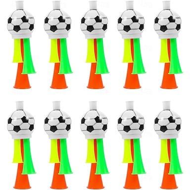 Conjunto de 10 buzinas vuvuzela para jogos de futebol de verão, mini buzinas de plástico com som alto, ideais para torcedores, crianças, eventos esportivos e festas. &carnavais