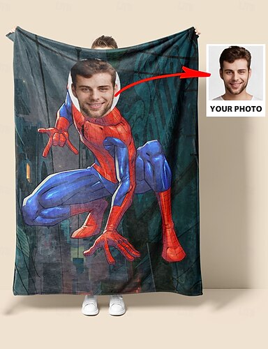 Manta de Super-Herói Personalizada Manta de Aranha com Foto Manta Personalizada para Meninos Presente do Dia dos Namorados Presente de Aniversário para Amante de Super-Herói