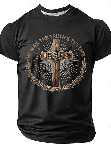 Camiseta Masculina da Bíblia Jesus O Caminho A Verdade A Vida Cruz de Madeira Coroa de Espinhos Fé Cristã Gráfica Camiseta de Manga Curta Gola Redonda Verso Bíblico Camiseta da Igreja Roupas Designer