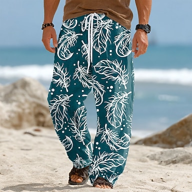 Homens Folha de palmeira Plantas Tropicais Calças Calça casual Calças largas Cintura Média Havaiana Ao ar livre Férias Roupa de Praia Cintura elástica com cordão Calças de linho com bolsos Verão