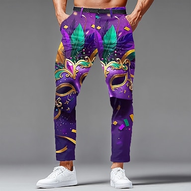 Carnaval Homens Carnaval Contas Máscara com penas Calças Social Calças de Terno Cintura Média Vintage retrô Feriado Calças Slim Fit com Bolsos Primavera Outono Impressão 3D Roxo Roxo Escuro