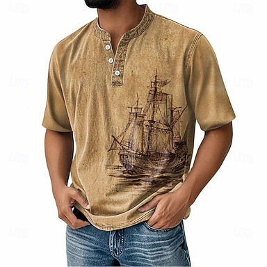 Homens Gráfico Viking Camiseta Camisa Henley Manga Curta Impressão 3D Moda Clássico Retro Vintage Esportes Feriado Para Noite Primavera Verão Azul Vermelho Roxo Verde Henley Camiseta Henley