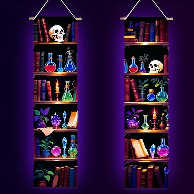 Conjunto de 2 tapeçarias de luz negra com efeito psicodélico em estante de livros, decoração de parede com efeito UV, pôsteres que reagem à luz negra, cenário estético para quarto e decoração de casa.