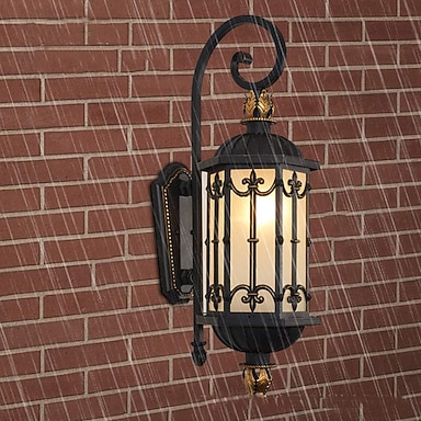 lanterna de parede à prova d'água luz de transporte ao ar livre arandela de parede preta rústica, luminária de varanda ip54 suporte de parede, abajur de vidro semeado lâmpada de parede externa para