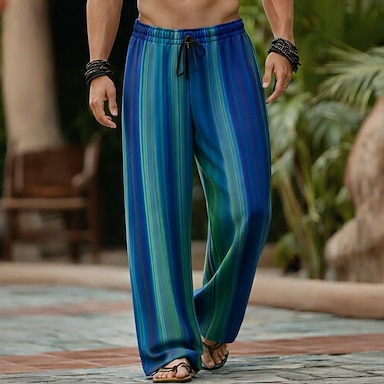 Homens Geométrica Listrado Cor gradiente Calças Calça casual Calças largas Cintura Média Moda Casa Ao ar livre Férias Cintura elástica com cordão Calças de linho com bolsos Verão Primavera Impressão