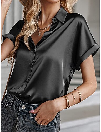 Mulheres Camisa Social Blusa Patchwork Botões Tecido Elegante Férias à moda Manga Curta Colarinho de Camisa Tops regulares Diário Feriado Para Noite Preto Branco Vinho Castanho Claro Roxo Verão