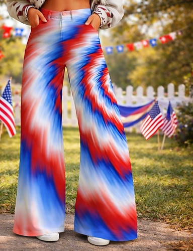 250º Aniversário EUA Retro Vintage Anos 70 Calças Calças de pernas largas Hippie Discoteca Cintura Alta Fantasia Mulheres Baile de Máscaras 4 de julho Dia da Independência Adulto Calças