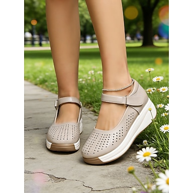 Sapatos femininos Mary Jane de plataforma, respiráveis, na cor cáqui – calçados casuais leves e com bom suporte, ideais para o trabalho, caminhadas, viagens e uso diário.