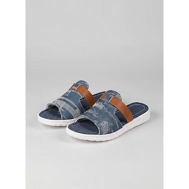 sandálias femininas de ganga com detalhes em pele sintética, estilo rústico chique de quinta para churrascos no quintal, caminhadas no campo e uso diário casual