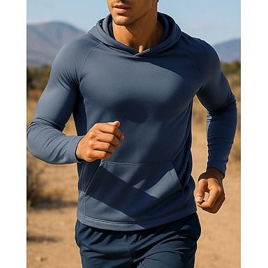 Homens Cor Sólida Moletom casual Pulôver com capuz Outono Com bolsos Manga Longa Roupa Esportiva Da Moda Corrida Exterior Viagem Azul Preto Amarelo Roupa de esporte Roupas Esportivas