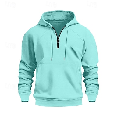 Homens Moletom Quarter Zipper Hoodie Azul Vinho Verde Cinzento Azul Claro Com Capuz Tecido Bolsos Diário Desportos e Ar livre Feriado Roupa de rua Básico Casual Primavera Outono Roupa Moletons