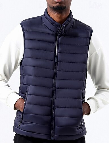 Homens Colete puffer Colete Gilet Férias Diário Encontro Moda Casual Inverno Bolsos Poliéster Manter Quente Confortável Côr Sólida Zíper Colarinho Chinês Normal Preto Azul Marinha Cinzento Colete
