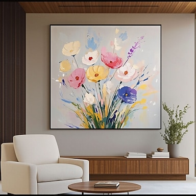 Pintura a óleo feita à mão sobre tela, arte de parede moderna com textura abstrata e flores coloridas para decoração de sala de estar, com moldura esticada ou sem moldura.