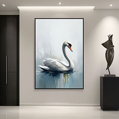 Pintura a óleo feita à mão, abstrata e elegante, de um cisne, pintura abstrata grande de animal, arte de parede em tons de cinza e marrom, arte abstrata moderna, arte em tela grande, pintura acrílica.