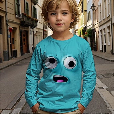 Para Meninos 3D Desenho Animado Camisa Camiseta Manga Longa Primavera Outono Moda Básico Infantil 4-12 anos Gola Redonda Ao ar livre Casual Diário Normal