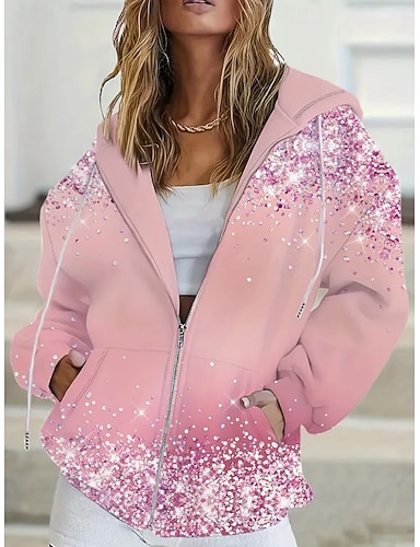 Mulheres Moletom com zíper Moletons Zip Up Bolsos Gráfico Abstrato Moda Roupa de rua Casual Manga Longa Com Capuz Tops regulares Casual Dia a Dia Para Noite Rosa Primavera Outono