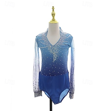Vestidos para Patinação Artística Mulheres Para Meninas Patinação no Gelo Vestidos Azul Com Stretch Treino Competição Roupa para Patinação Térmico / Quente Cristal / Strass Manga Longa Patinação no