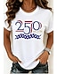 Dia da Independência Americana Mulheres Camiseta Imprimir Gráfico Bandeira Letra Vintage Moda à moda Manga Curta Gola Redonda Decote Redondo Tops regulares Casual Diário Final de semana Branco / azul